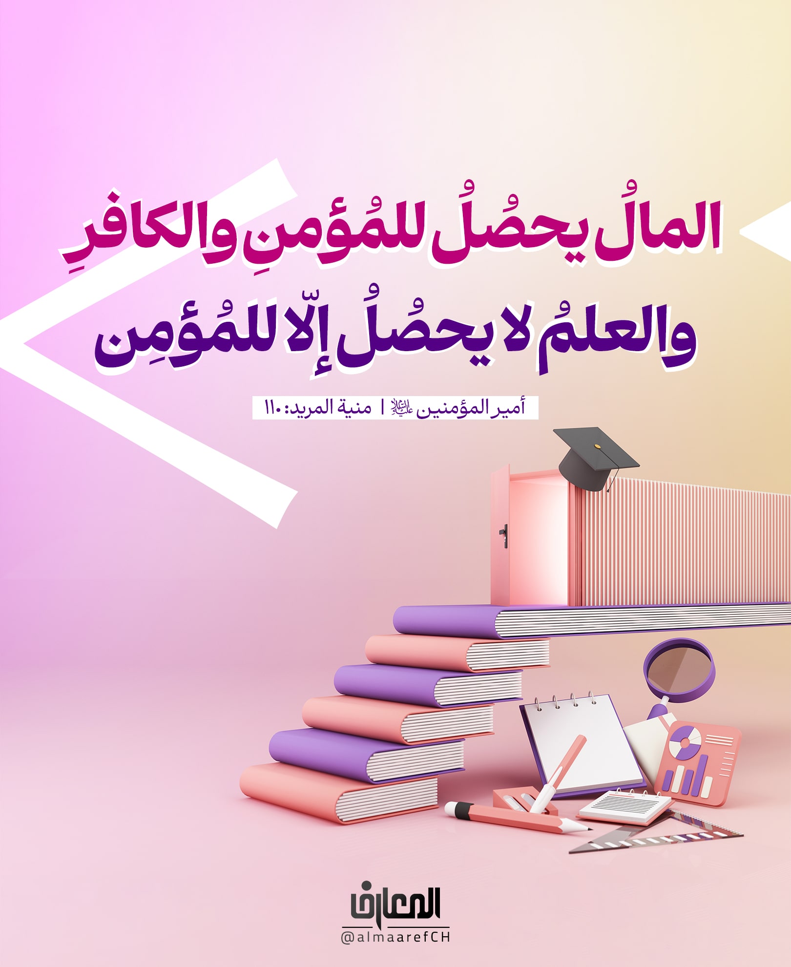 6) المالُ يحصُلُ للمُؤمِنِ والكافِر، والعلمُ لا يحصُلُ إلّا للمُؤمِن