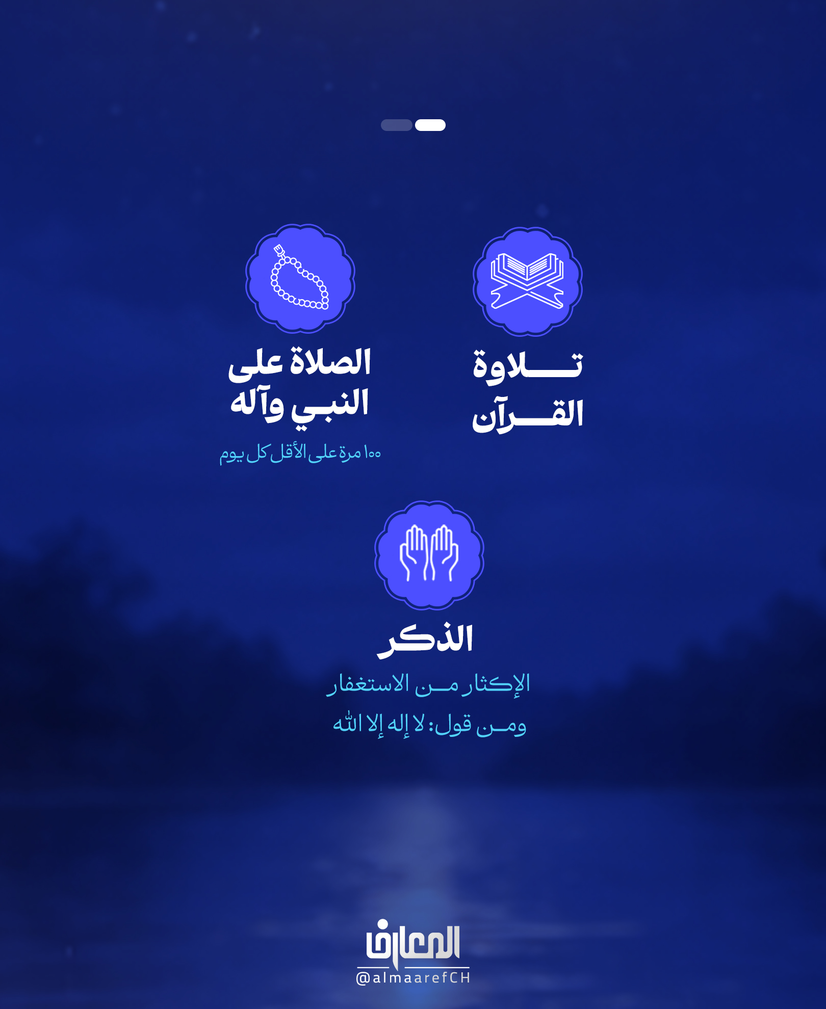 الصلاة على النبي وآله (ع) في كل يوم 100 مرة، والأفضل أن تزيد عليها.