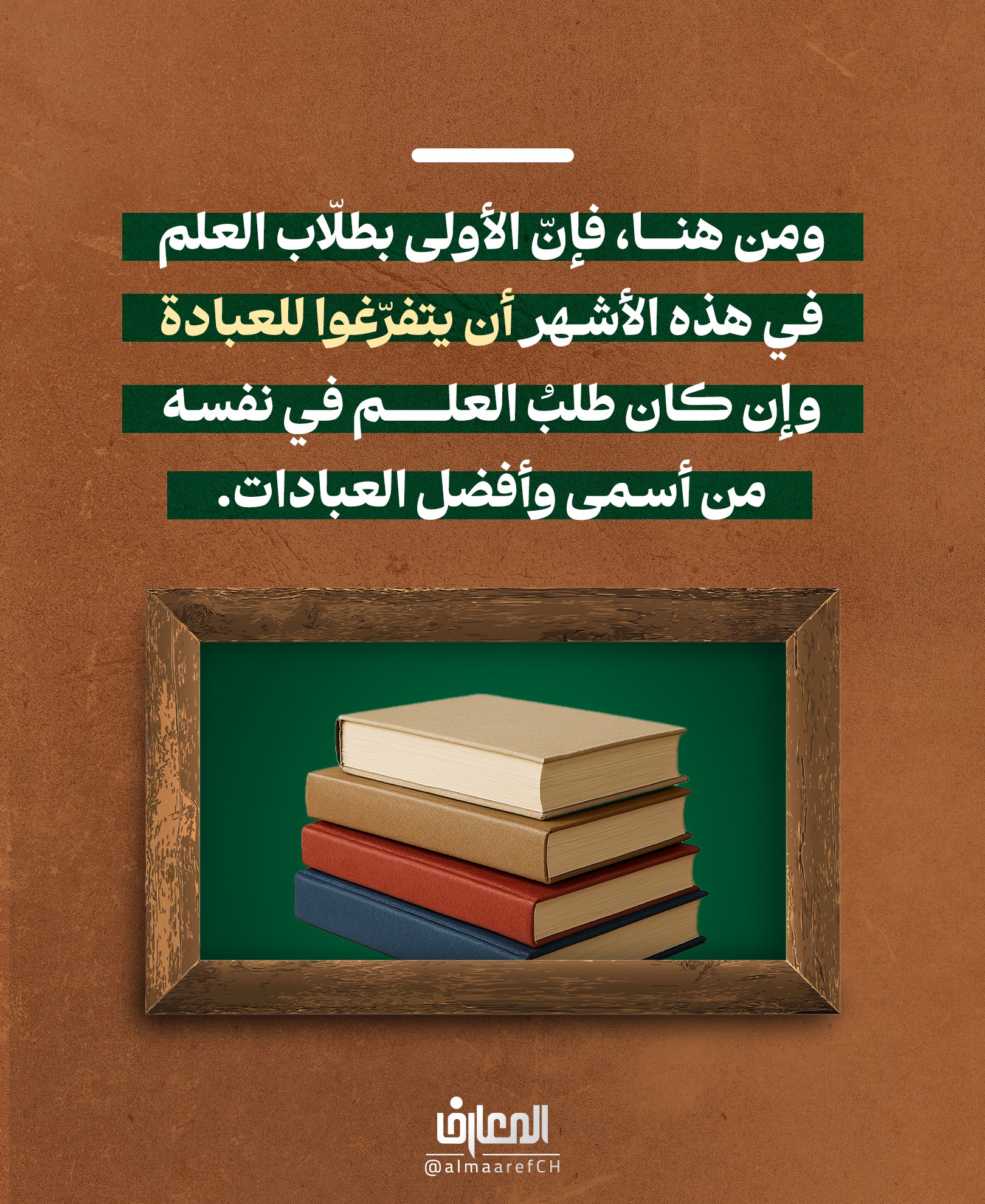 ومن هنا، فإنّ الأَولى بطُلّاب العلم في هذه الأشهر أن يتفرّغوا للعبادة، وإن كان طلبُ العلم في نفسه من أسمى وأفضل العبادات.