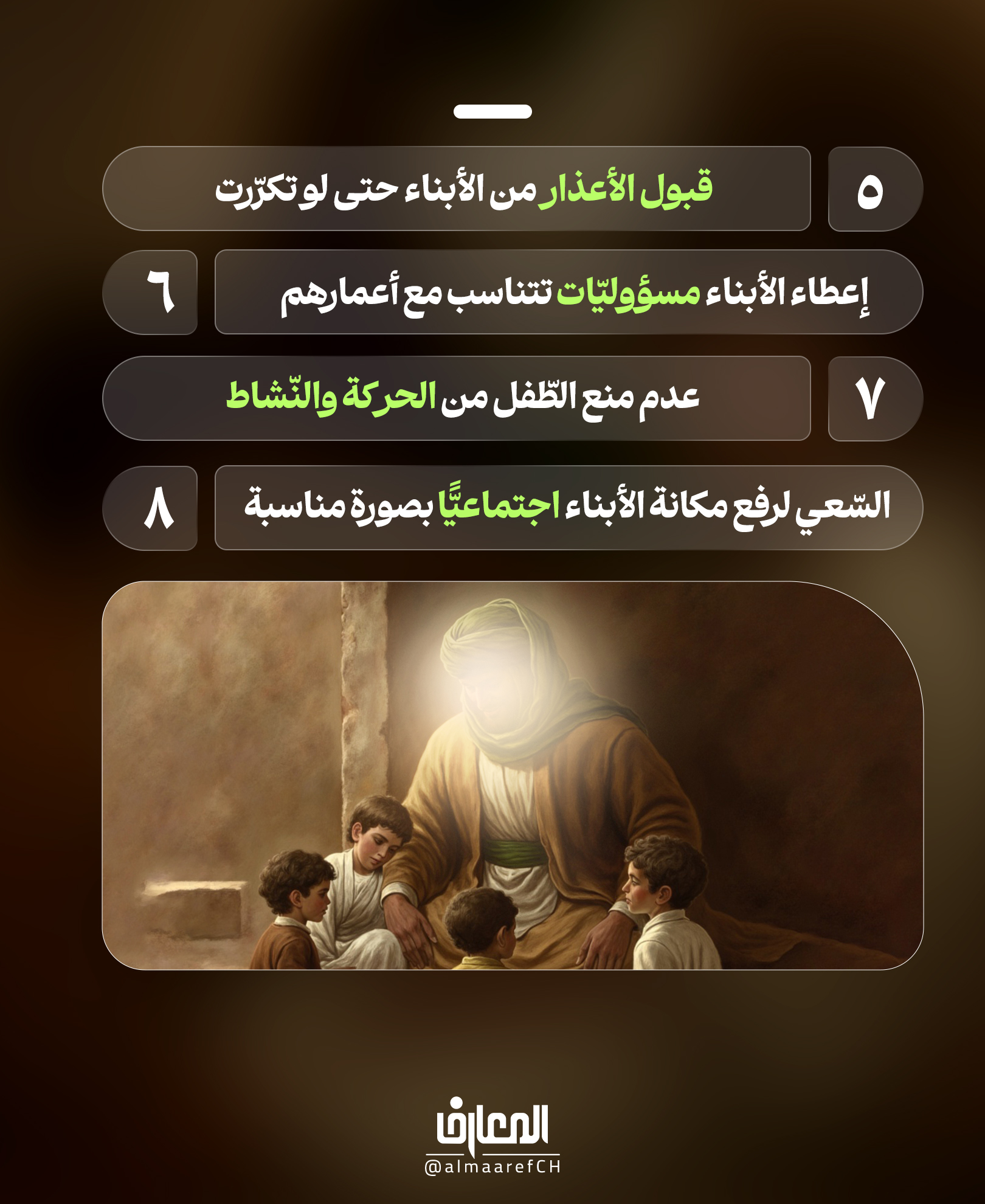 مبادئ تربية الأبناء في كلام الإمام الكاظم (ع)