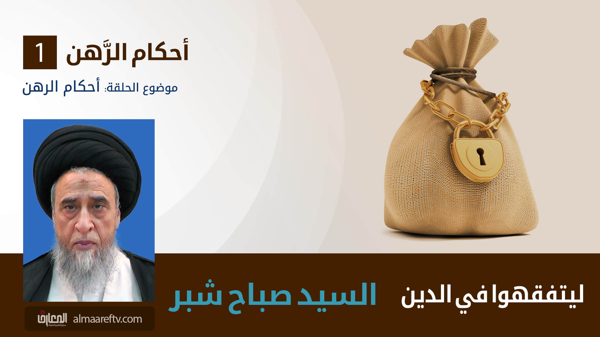 احكام الرهن ,الرهن هو جعل وثيقة للتامين على دين او عين مضمونة ,الرهن عقد مركب من ايجاب من الراهن وقبول من المرتهن ولا يعتبر فيهما اللفظ بل يتحققان بالفعل ايضا فلو دفع المديون مالا للدائن بقصد الرهن واخذه الدائن بهذا القصد كفى,يعتبر في المرهون ان يكون عينا خارجية مملوكة يجوز بيعها وشراؤها فلا يصح رهن الدين قبل قبضه ولا المنفعة ولا الحر ولا الخمر والخنزير ولا الارض الخراجية ولا الطير المملوك في الهواء اذا كان غير معتاد العود ولا الوقف ولو كان خاصا الا مع وجود احد مسوغات بيعه, يعتبر في العين المرهونة جواز تصرف الراهن فيها ولو بالرهن فقط فاذا رهن مملوك الغير فصحته موقوفة على اجازة المالك ولو ضمه الى مملوكه فرهنهما لزم الرهن في ملكه وتوقف في الضميمة على اجازة مالكها,مسالة جواز التصرف في العين المرهونة وعلاقته بمسالة الربا,مسالة اشتراط التصرف بالعنين المرهونة في حالة الدين لا القرض,مسالة تصرف الراهن في العين المرهونة